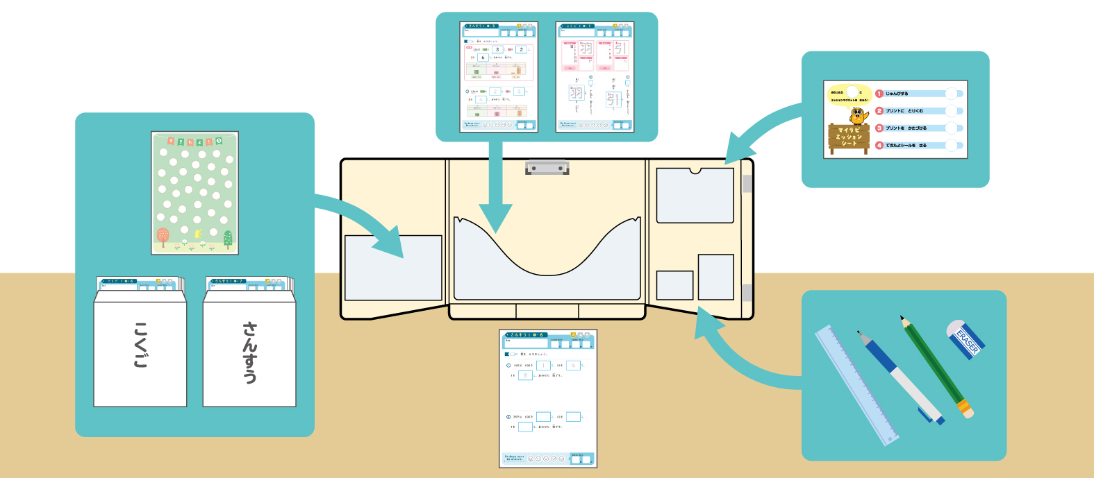 ご入会時に、学習に集中しやすい卓上ブースや学習予定のプランニングができるボードなどをお届けします。 お子さまが迷わず、集中しやすい環境がつくれます。