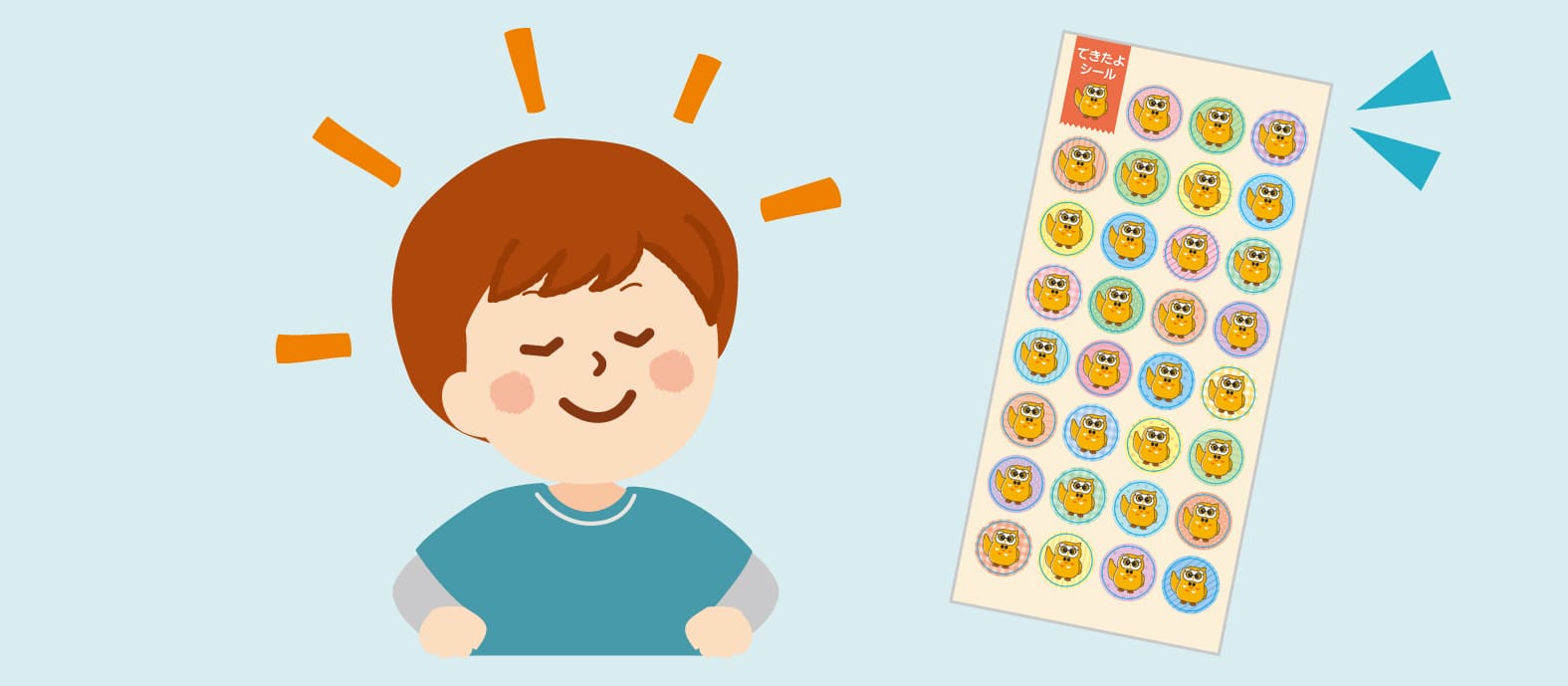 シールや表彰状など、お子さまの「がんばり」をカタチにして、ほめるシステムを用意。保護者の方向けの「準備とアドバイス」や、「がんばりポイント申請」には、お子さまをほめるポイントを多数例示しています。